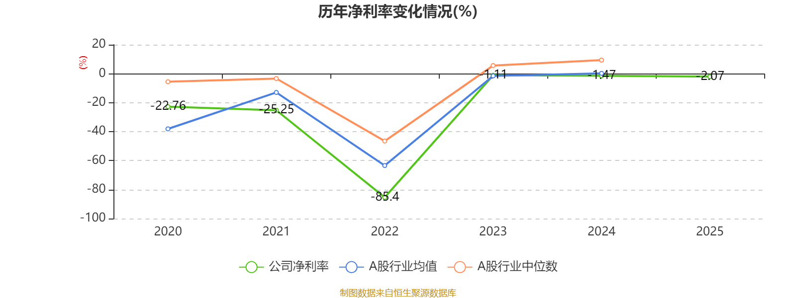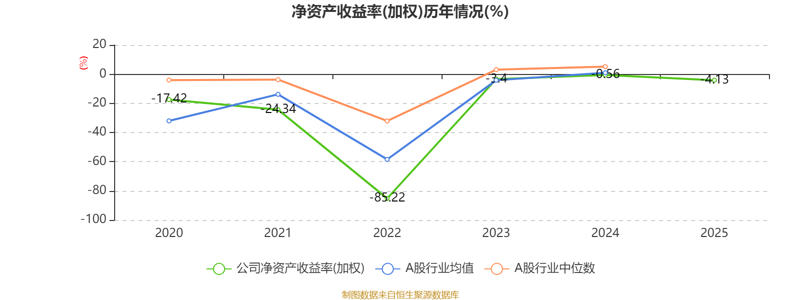 数据显示,2025年公司平均净资产收益率为-4.13%,较上年同期下降3.57个百分点。