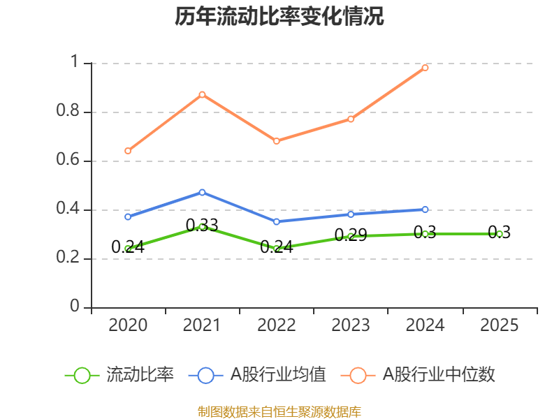 2025年,公司流动比率为0.30,速动比率为0.26。