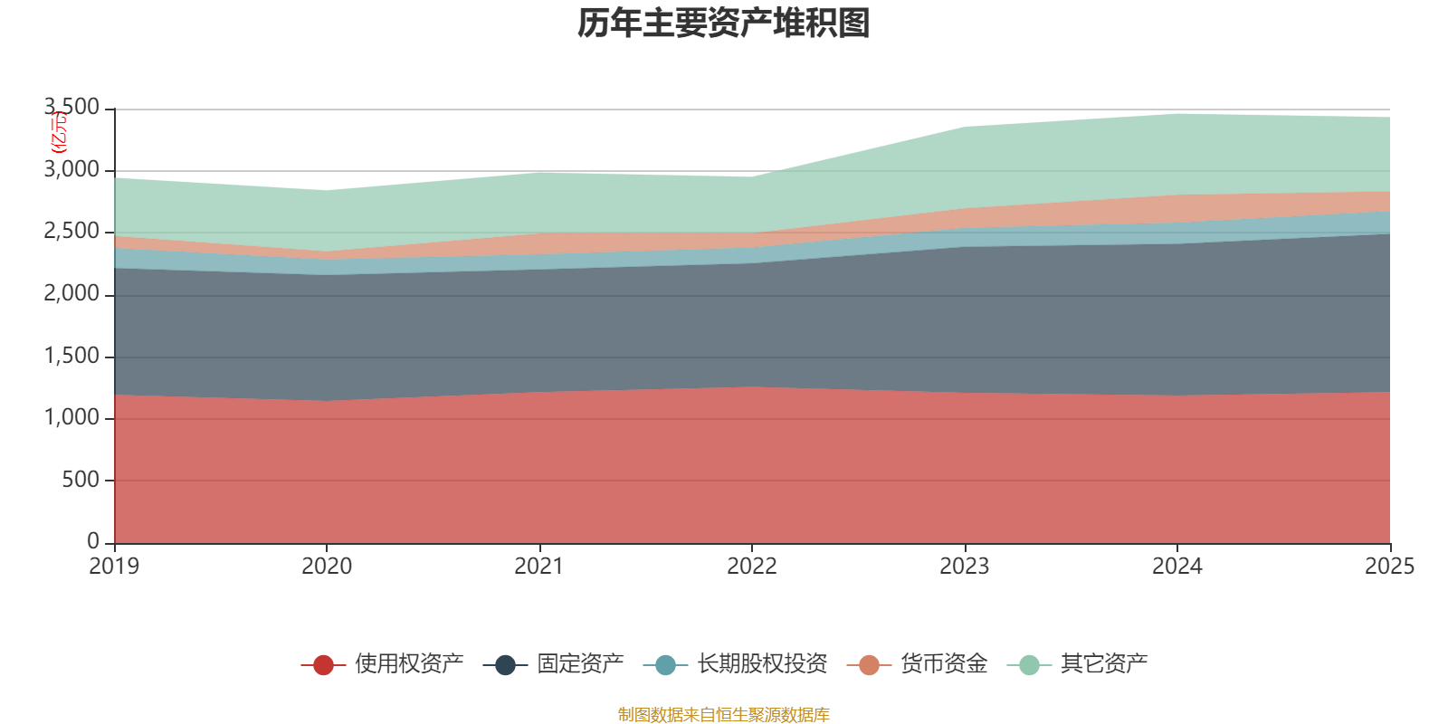 资产重大变化方面,截至2025年末,公司货币资金较上期末减少29.41%,占公司总资产比重下降1.87个百分点;固定资产较上期末增加4.24%,占公司总资产比重上升1.79个百分点;使用权资产较上期末增加2.39%,占公司总资产比重上升1.1个百分点;长期股权投资较上期末增加8.07%,占公司总资产比重上升0.44个百分点。