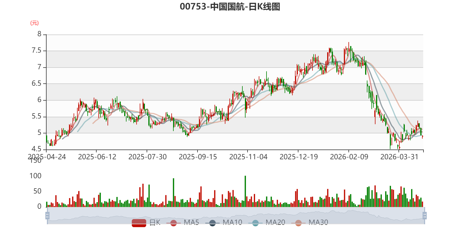 以4月24日收盘价计算,中国国航目前市净率(TTM)约1.82倍,市销率(TTM)约0.45倍。