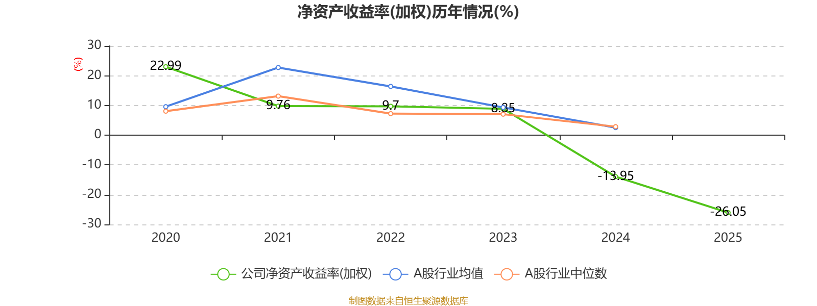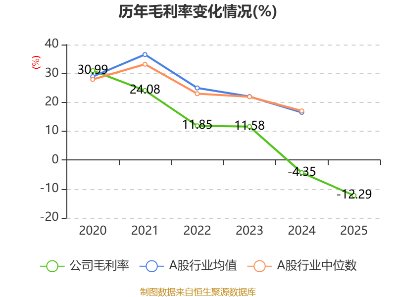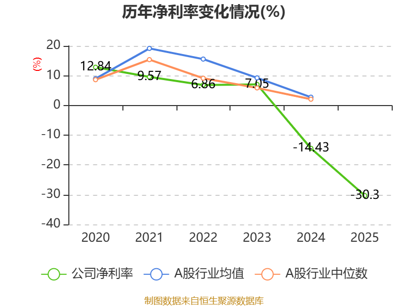 数据显示,2025年公司平均净资产收益率为-26.05%,较上年同期下降12.1个百分点。