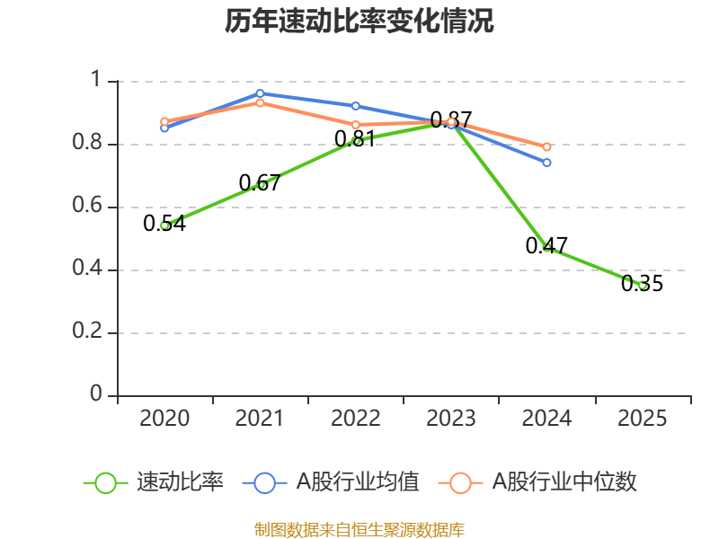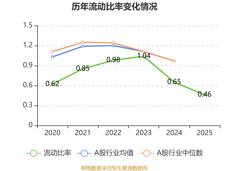 2025年,公司流动比率为0.46,速动比率为0.35。