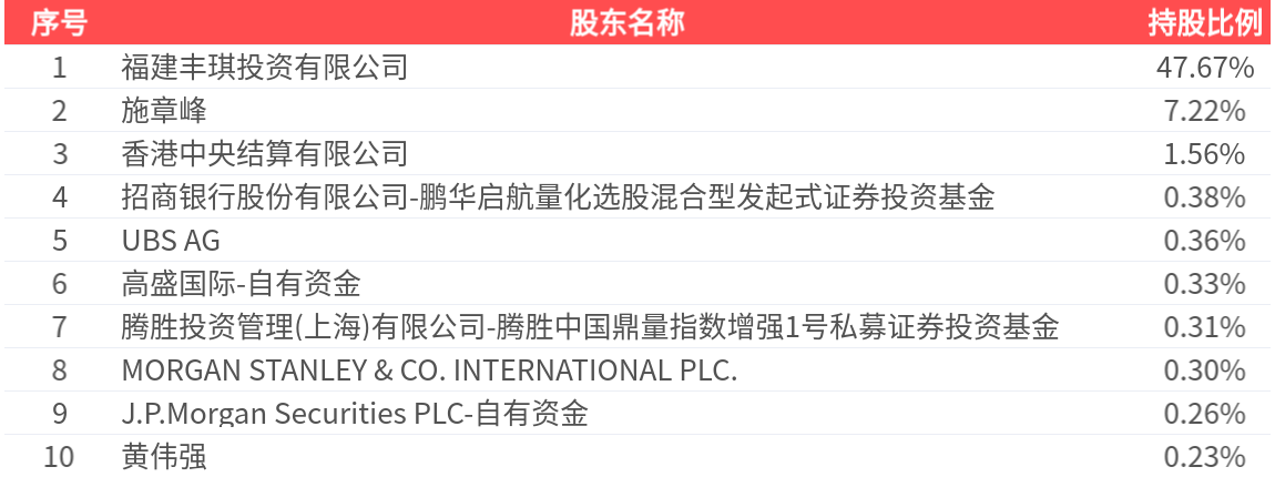 公司股东户数为9.28万户,前十大股东持股数量为5.10亿股,占总股本比例为58.62%,前十大股东持股情况如下: