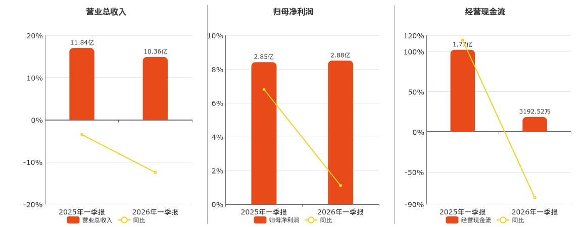 公司营业总收入为10.36亿元。归母净利润为2.88亿元,较去年同报告期归母净利润增加313.00万元,实现5年连续上涨,同比较去年同期上涨1.10%。经营活动现金净流入为3192.52万元。