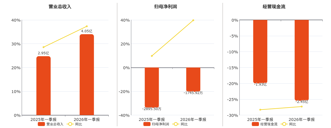 公司营业总收入为4.05亿元。归母净利润为-1745.92万元。经营活动现金净流入为-2.45亿元,较去年同报告期经营活动现金净流入减少5256.50万元。