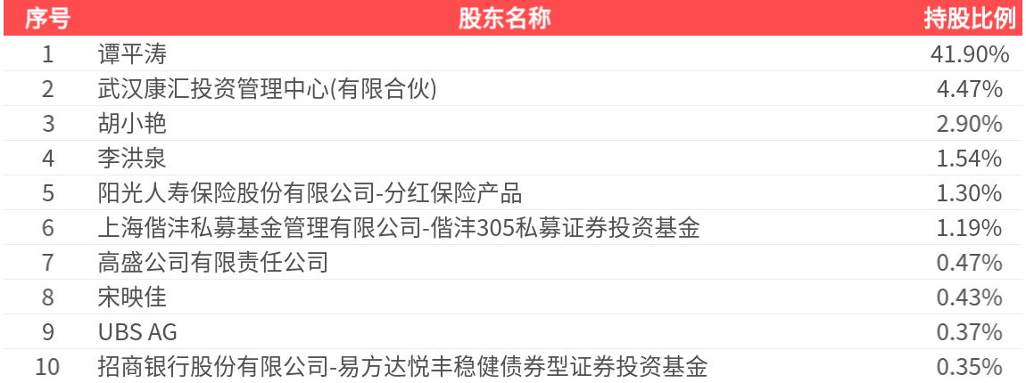 公司股东户数为1.34万户,前十大股东持股数量为5917.93万股,占总股本比例为54.91%,前十大股东持股情况如下: