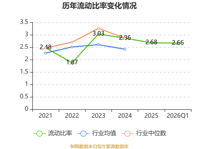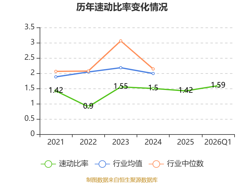 2026年第一季度,公司流动比率为2.66,速动比率为1.59。
