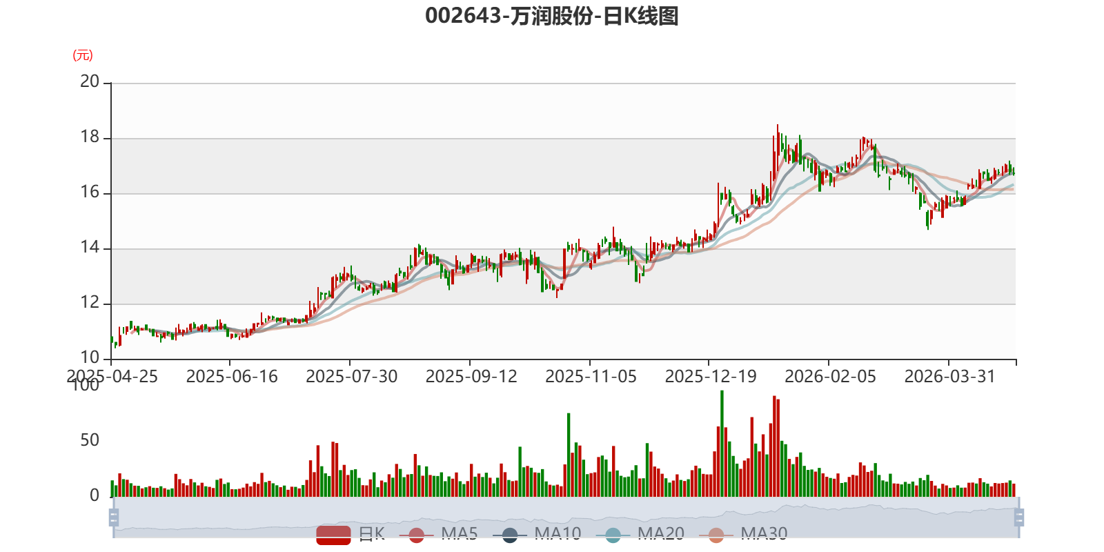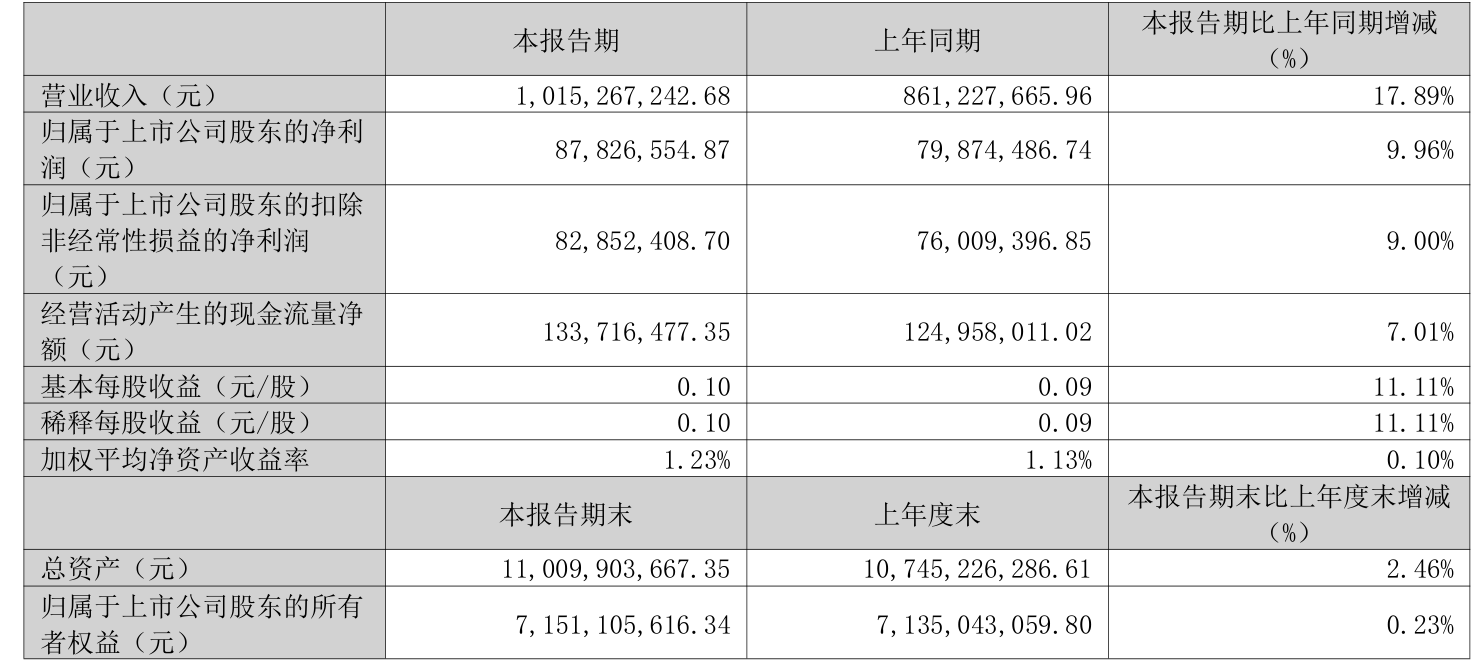 中证智能财讯万润股份(002643)4月25日披露2026年第一季度报告。公司实现营业总收入10.15亿元,同比增长17.89%;归母净利润8782.66万元,同比增长9.96%;扣非净利润8285.24万元,同比增长9.00%;经营活动产生的现金流量净额为1.34亿元,同比增长7.01%;报告期内,万润股份基本每股收益为0.1元,加权平均净资产收益率为1.23%。