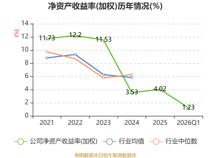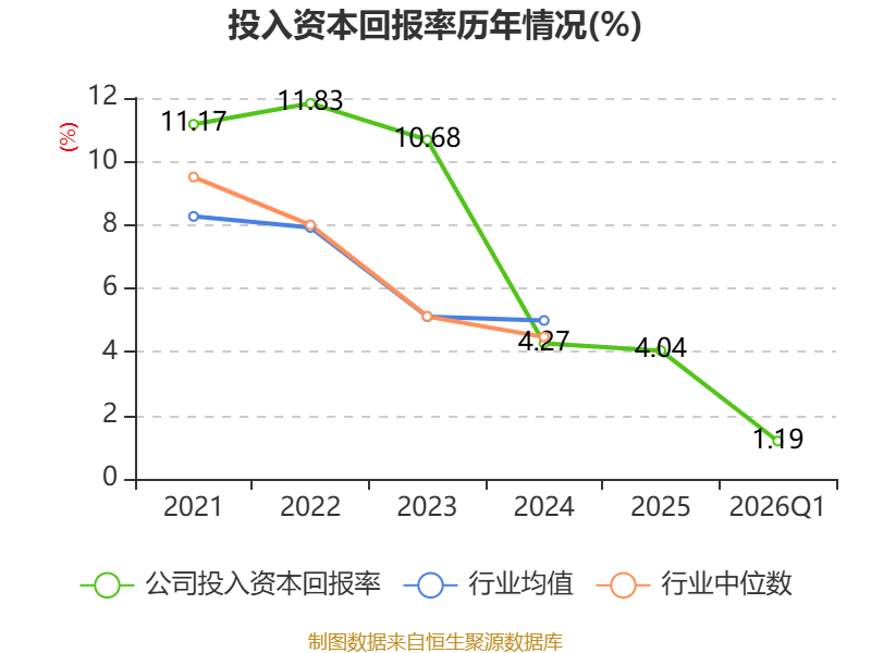 盈利能力方面, 2026年一季度公司加权平均净资产收益率为1.23%,同比上升0.1个百分点。公司2026年第一季度投入资本回报率为1.19%,较上年同期上升0.05个百分点。