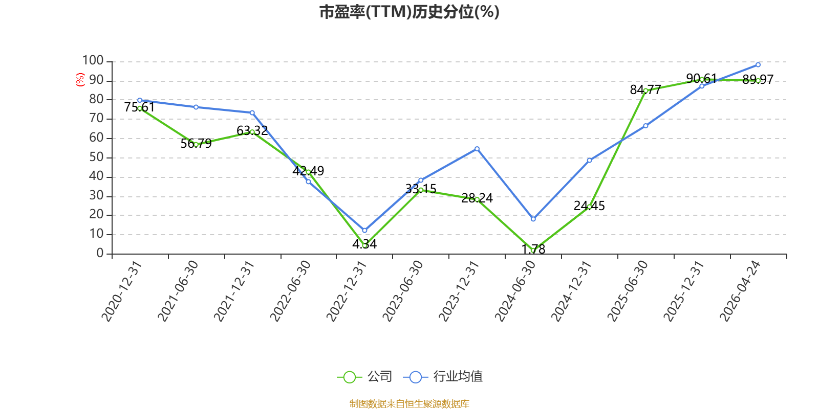 市盈率、市净率为负时,不显示当期分位数,会导致折线图中断。