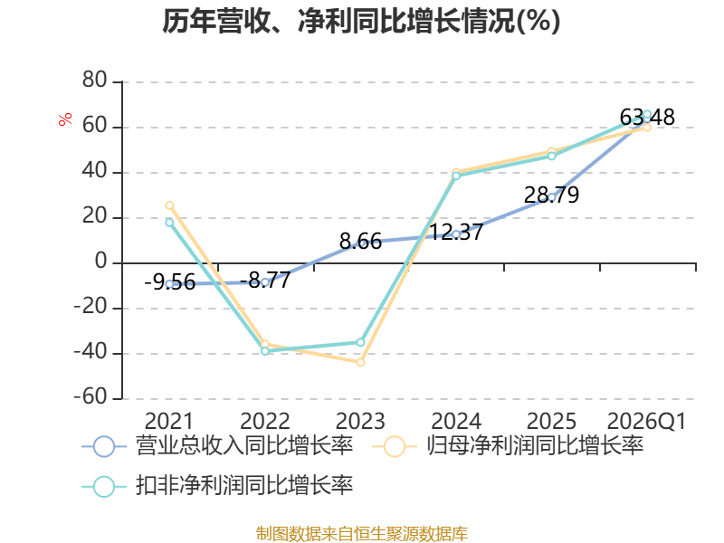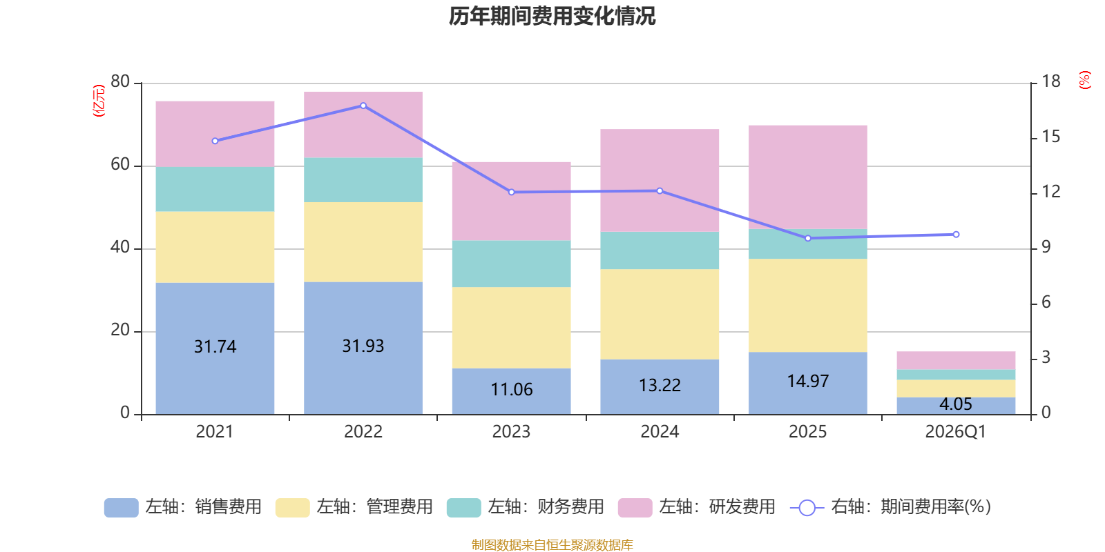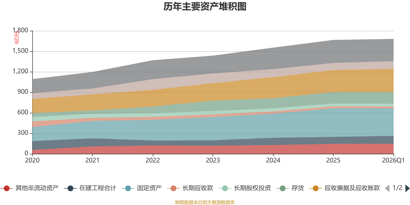 资产重大变化方面,截至2026年一季度末,公司固定资产较上年末减少3.78%,占公司总资产比重下降1.17个百分点;其他流动资产较上年末减少24.3%,占公司总资产比重下降0.8个百分点;应收票据及应收账款较上年末增加4.92%,占公司总资产比重上升0.77个百分点;在建工程合计较上年末增加12.04%,占公司总资产比重上升0.68个百分点。