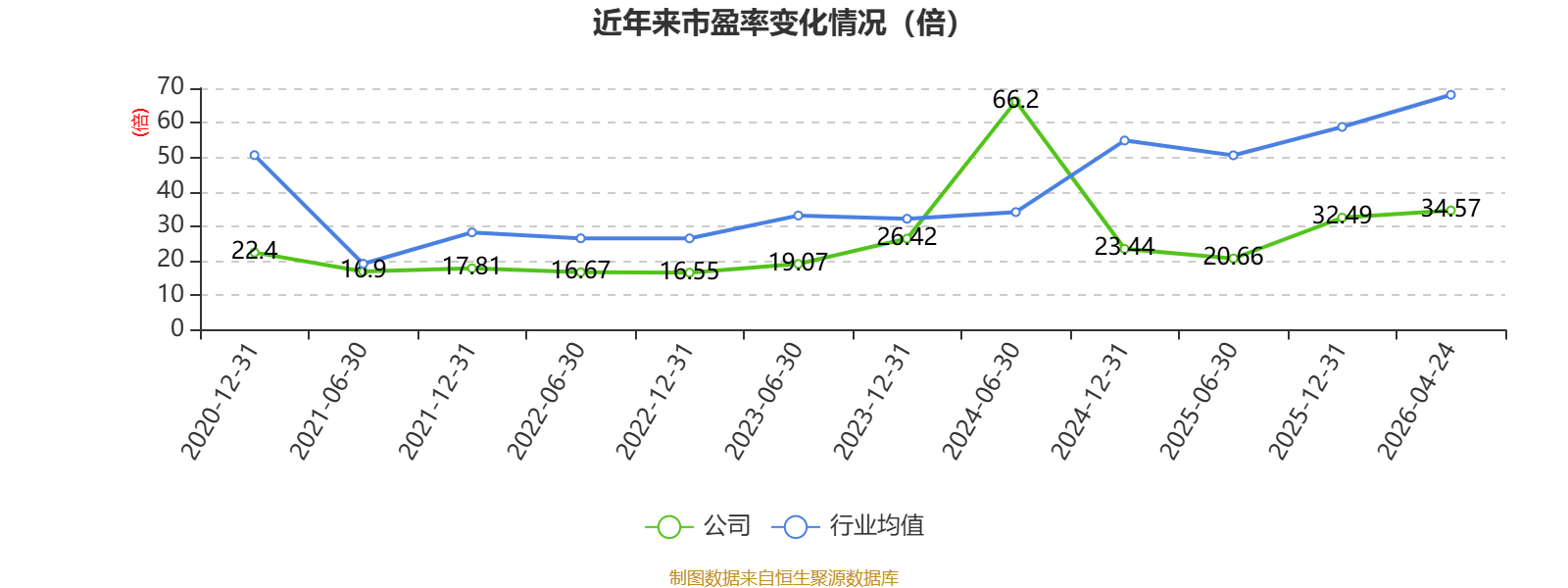 以4月24日收盘价计算,金风科技目前市盈率(TTM)约为34.57倍,市净率(LF)约2.41倍,市销率(TTM)约1.36倍。