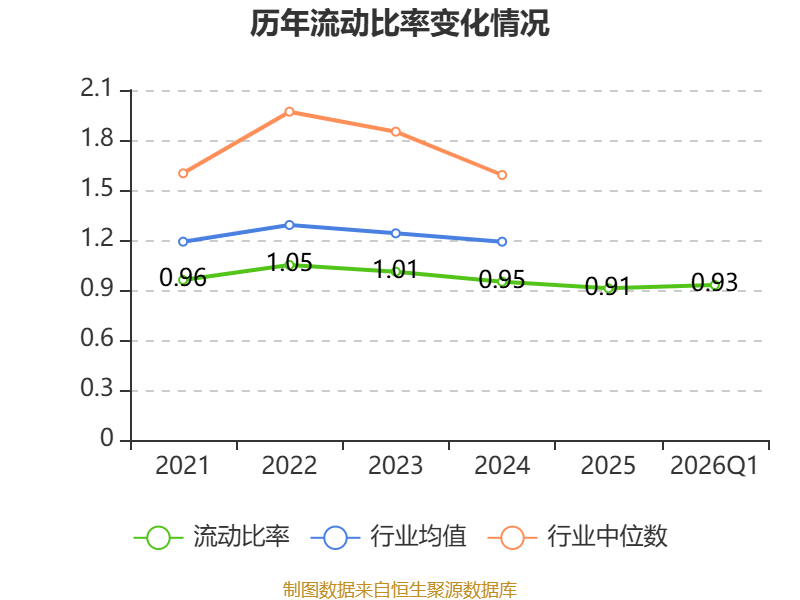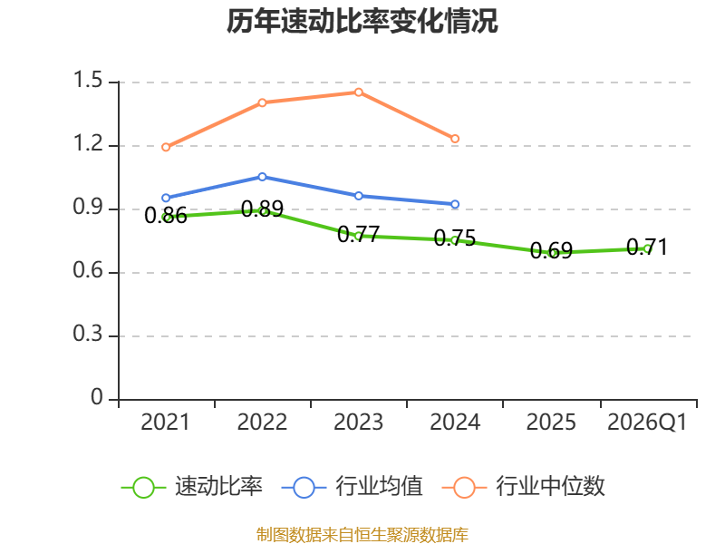 2026年第一季度,公司流动比率为0.93,速动比率为0.71。