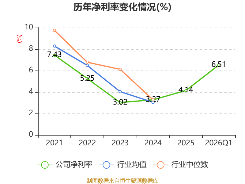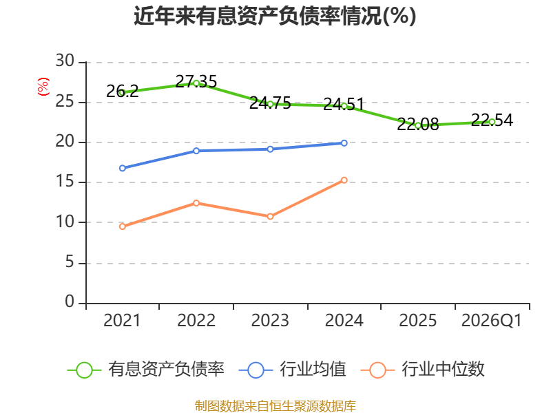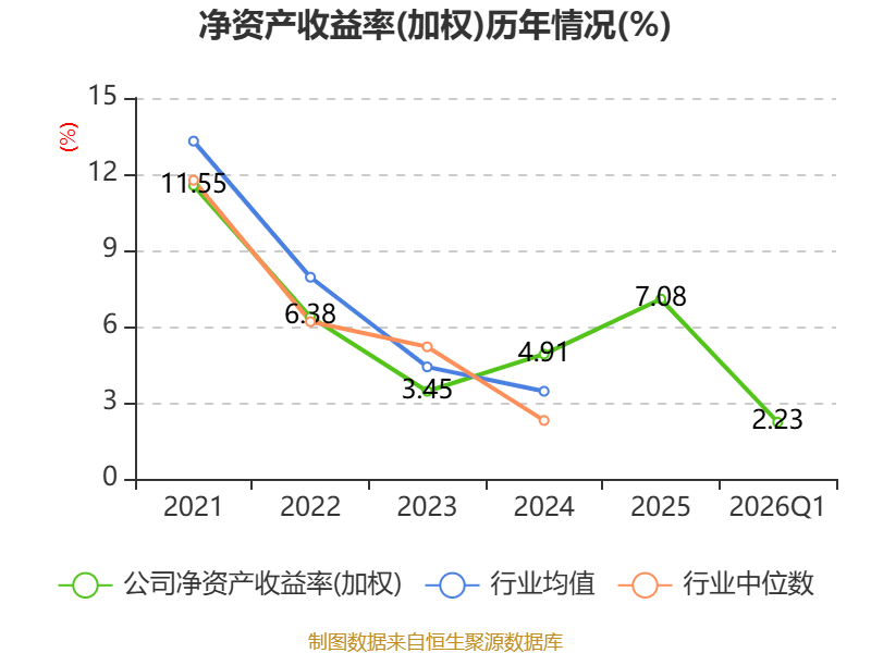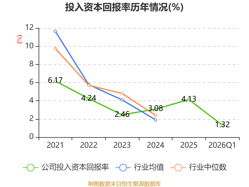 盈利能力方面, 2026年一季度公司加权平均净资产收益率为2.23%,同比上升0.75个百分点。公司2026年第一季度投入资本回报率为1.32%,较上年同期上升0.41个百分点。