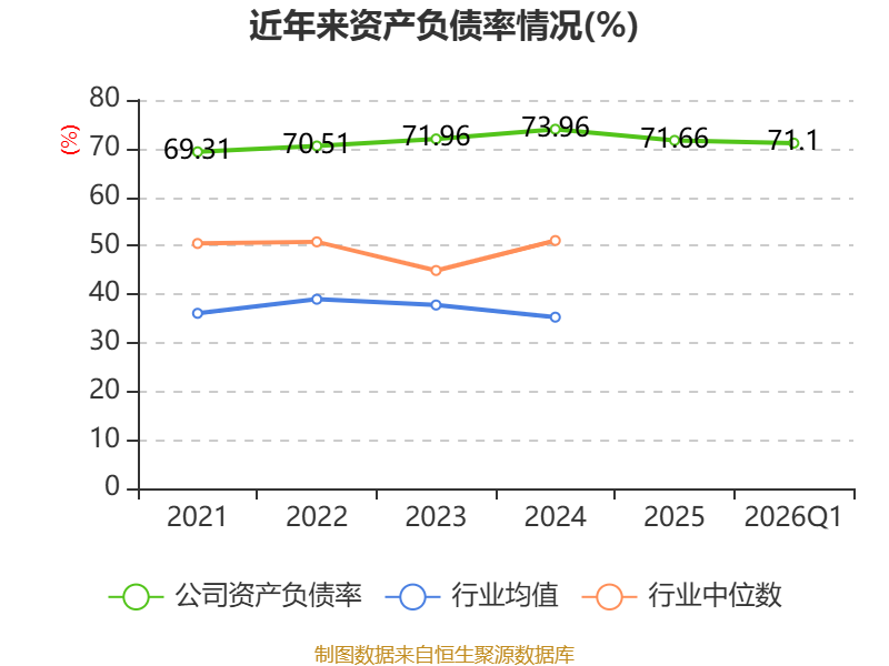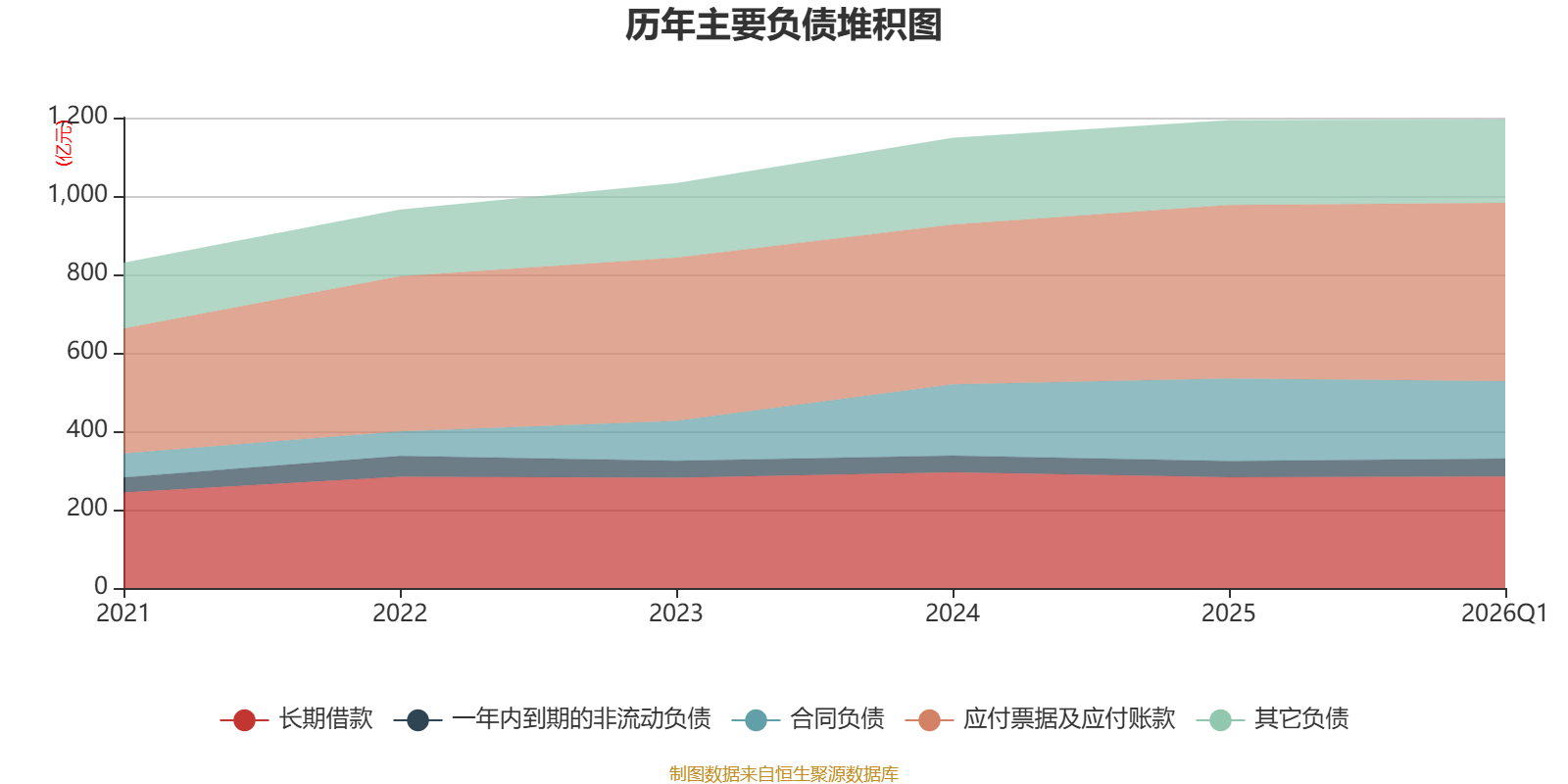 负债重大变化方面,截至2026年一季度末,公司合同负债较上年末减少6.2%,占公司总资产比重下降0.89个百分点;应付票据及应付账款较上年末增加2.82%,占公司总资产比重上升0.5个百分点;长期应付款合计较上年末减少11.43%,占公司总资产比重下降0.23个百分点;一年内到期的非流动负债较上年末增加9.54%,占公司总资产比重上升0.21个百分点。