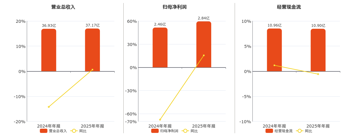 公司营业总收入为37.17亿元,在已披露的同业公司中排名第2,较去年同报告期营业总收入增加2336.85万元,同比较去年同期上涨0.63%。归母净利润为2.84亿元,在已披露的同业公司中排名第9,较去年同报告期归母净利润增加3820.25万元,同比较去年同期上涨15.51%。经营活动现金净流入为10.90亿元,在已披露的同业公司中排名第2。