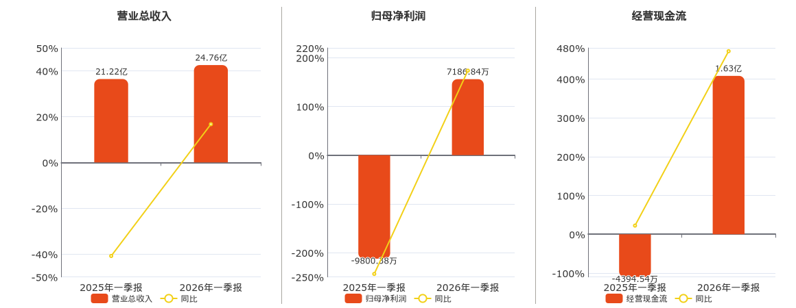 公司营业总收入为24.76亿元,较去年同报告期营业总收入增加3.54亿元,同比较去年同期上涨16.70%。归母净利润为7186.84万元,较去年同报告期归母净利润增加1.70亿元。经营活动现金净流入为1.63亿元,较去年同报告期经营活动现金净流入增加2.07亿元,实现3年连续上涨。