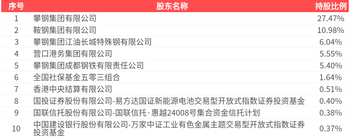 公司股东户数为28.76万户,前十大股东持股数量为54.57亿股,占总股本比例为58.73%,前十大股东持股情况如下: