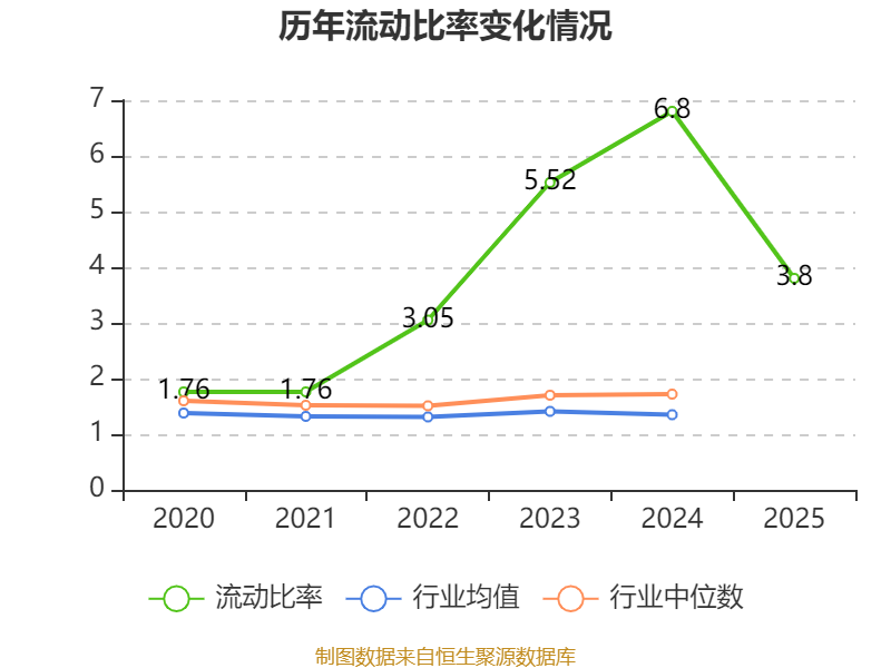 2025年,公司流动比率为3.8,速动比率为1.22。