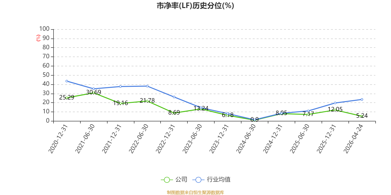 市盈率、市净率为负时,不显示当期分位数,会导致折线图中断。