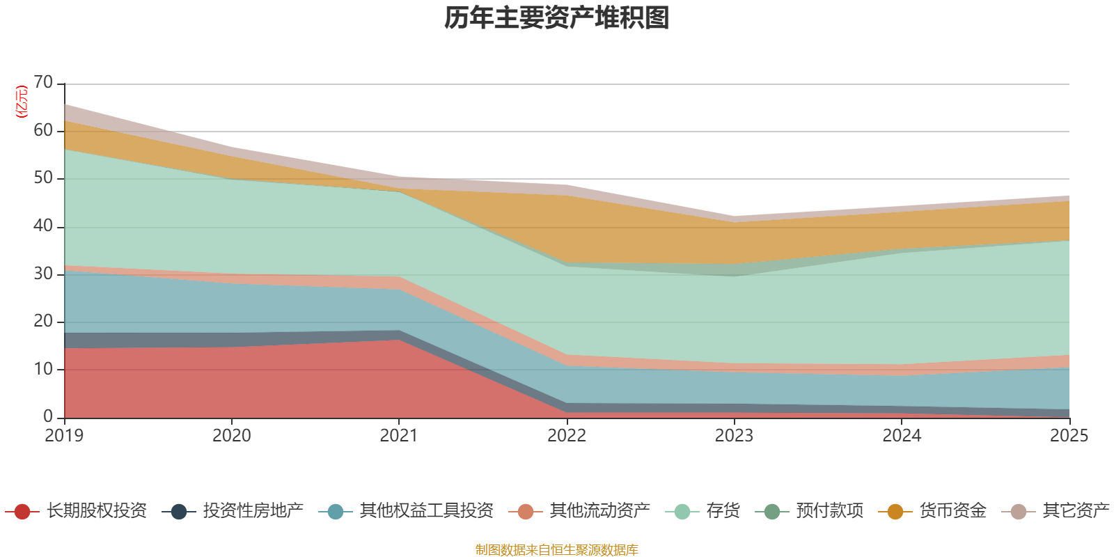 资产重大变化方面,截至2025年末,公司其他权益工具投资较上年末增加39.3%,占公司总资产比重上升4.68个百分点;长期股权投资较上年末减少92.92%,占公司总资产比重下降1.94个百分点;预付款项较上年末减少82.79%,占公司总资产比重下降1.73个百分点;存货较上年末增加2.42%,占公司总资产比重下降1.24个百分点。
