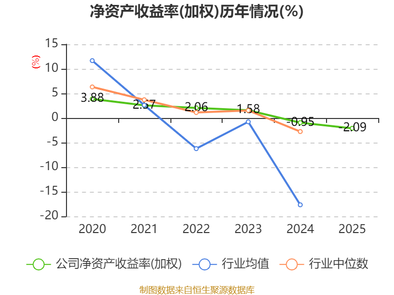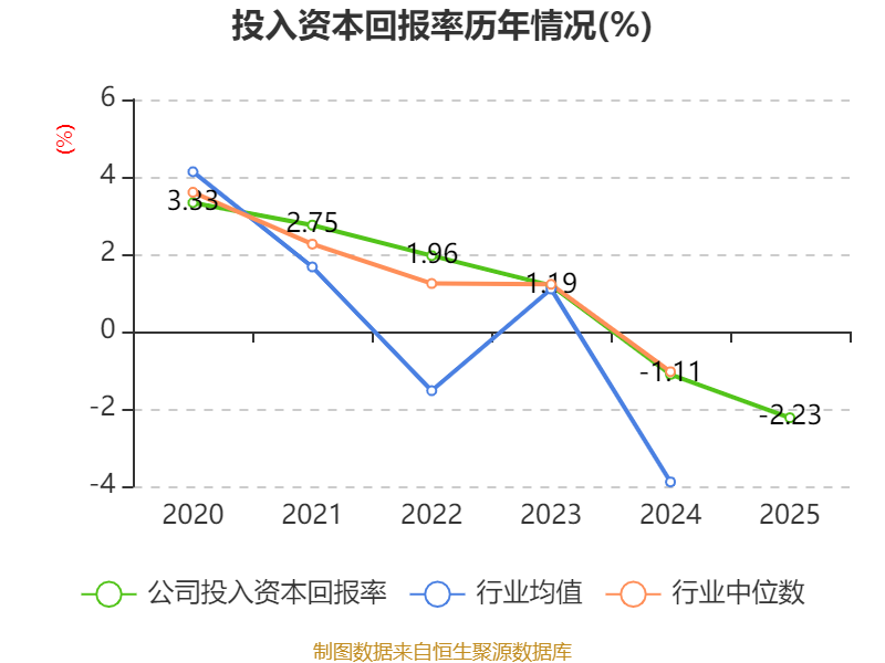 数据显示,2025年公司加权平均净资产收益率为-2.09%,较上年同期下降1.14个百分点。公司2025年投入资本回报率为-2.23%,较上年同期下降1.12个百分点。