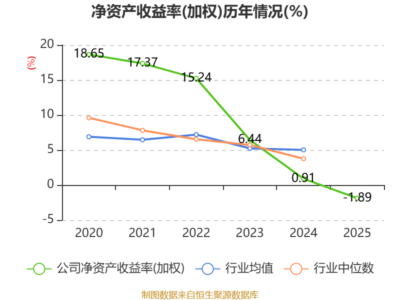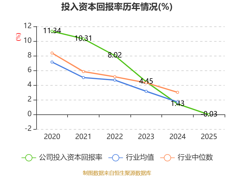数据显示,2025年公司加权平均净资产收益率为-1.89%,较上年同期下降2.8个百分点。公司2025年投入资本回报率为-0.03%,较上年同期下降1.46个百分点。