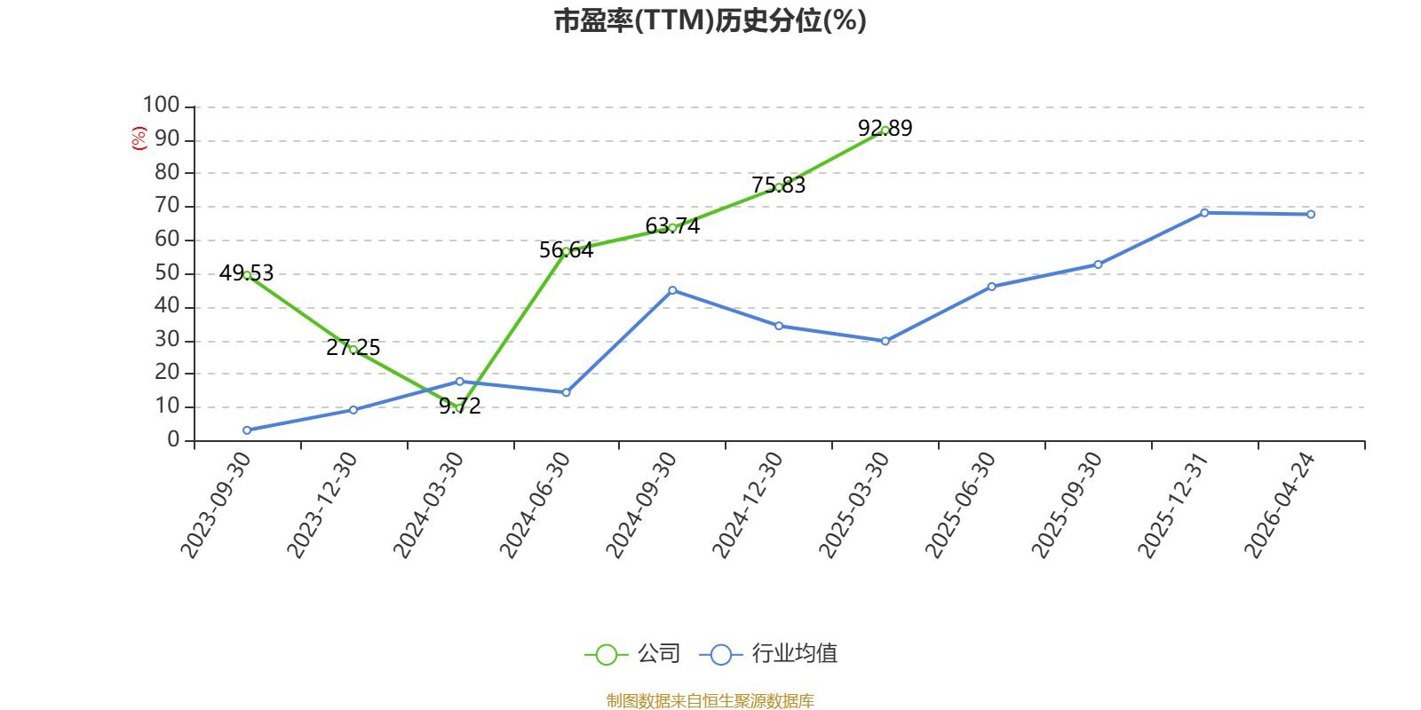 市盈率、市净率为负时,不显示当期分位数,会导致折线图中断。
