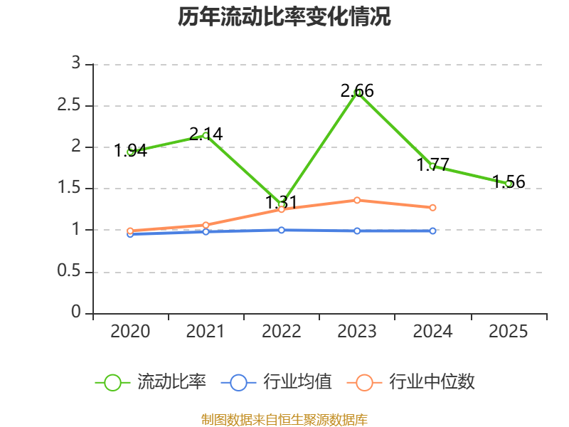 2025年,公司流动比率为1.56,速动比率为1.51。