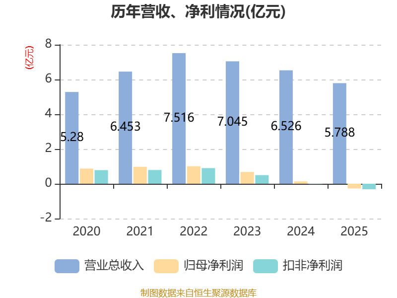 中证智能财讯舜禹股份(301519)4月25日披露2025年年度报告。2025年,公司实现营业总收入5.79亿元,同比下降11.30%;归母净利润亏损2699.93万元,上年同期盈利1364.98万元;扣非净利润亏损3133.78万元,上年同期亏损147.76万元;经营活动产生的现金流量净额为-1.22亿元,上年同期为-2.78亿元;报告期内,舜禹股份基本每股收益为-0.17元,加权平均净资产收益率为-1.89%。公司2025年度分配预案为:拟向全体股东每10股派现1元(含税)。