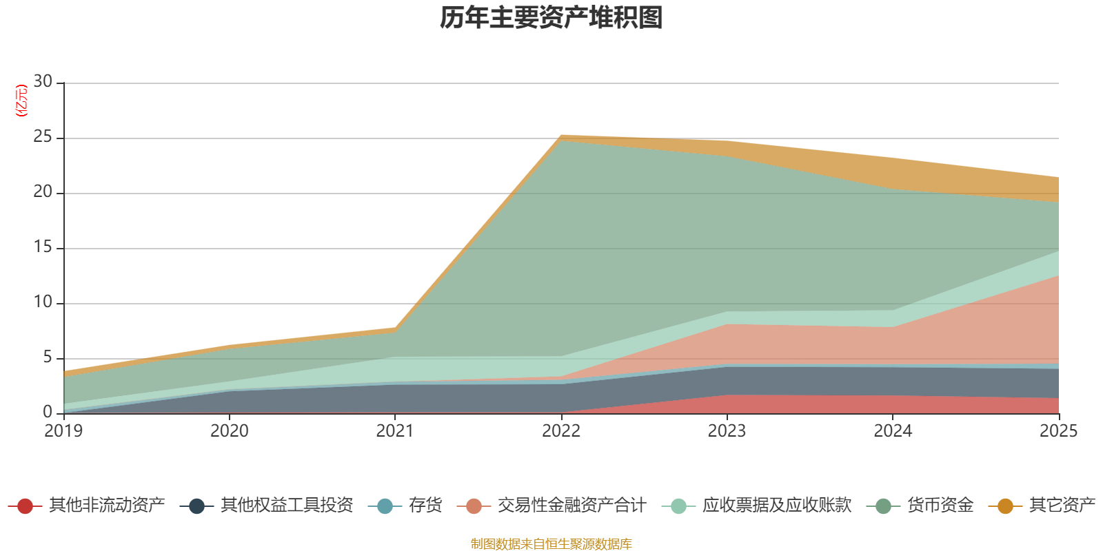 资产重大变化方面,截至2025年末,公司货币资金较上年末减少59.79%,占公司总资产比重下降26.83个百分点;交易性金融资产合计较上年末增加137.97%,占公司总资产比重上升22.88个百分点;应收票据及应收账款较上年末增加45.36%,占公司总资产比重上升3.78个百分点;使用权资产较上年末减少69.97%,占公司总资产比重下降1.68个百分点。