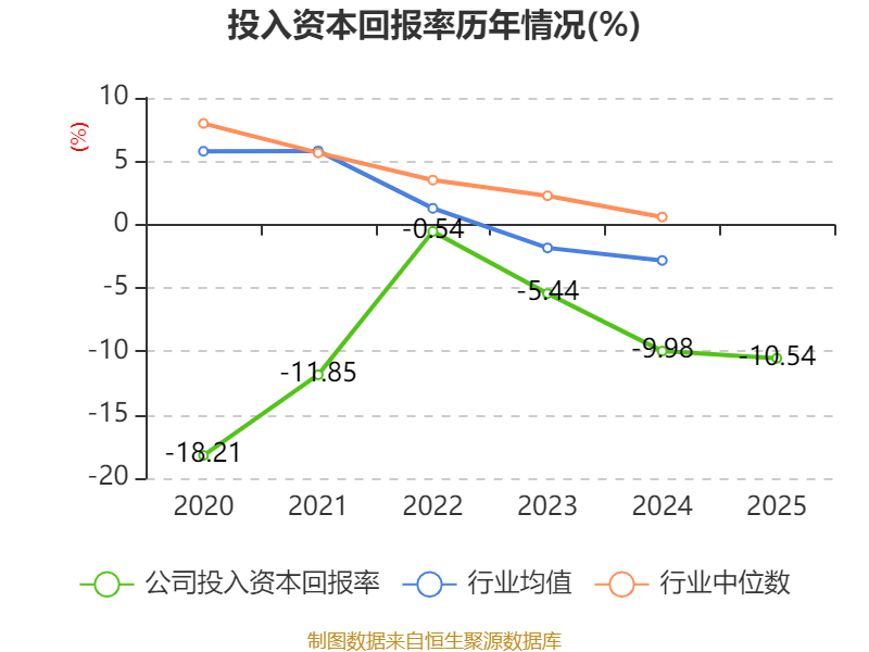 数据显示,2025年公司加权平均净资产收益率为-9.57%,较上年同期上升0.16个百分点。公司2025年投入资本回报率为-10.54%,较上年同期下降0.56个百分点。