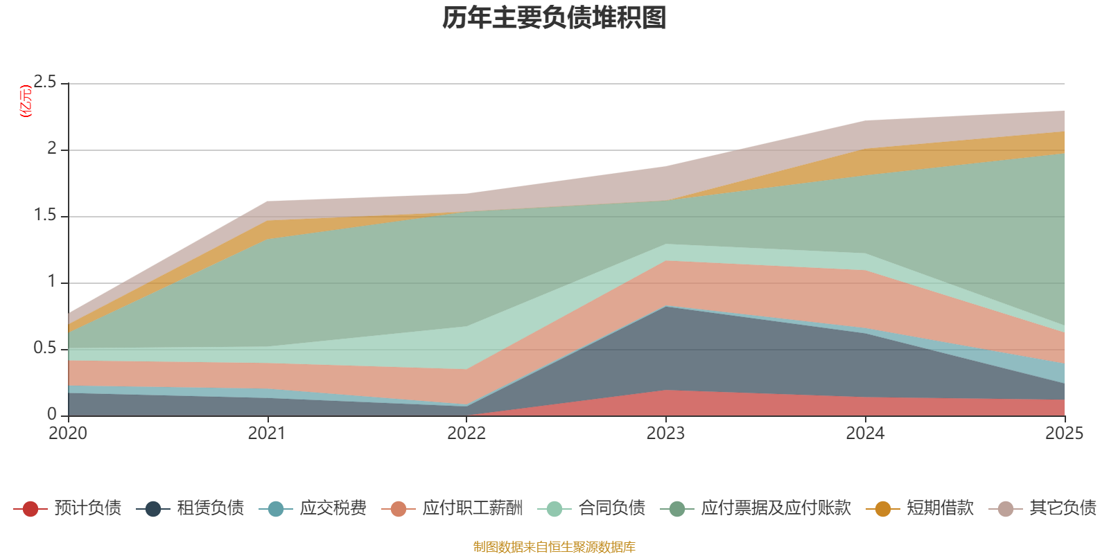 负债重大变化方面,截至2025年末,公司应付票据及应付账款较上年末增加120.66%,占公司总资产比重上升3.51个百分点;租赁负债较上年末减少74.31%,占公司总资产比重下降1.49个百分点;应付职工薪酬较上年末减少46.27%,占公司总资产比重下降0.78个百分点;应交税费较上年末增加263.96%,占公司总资产比重上升0.52个百分点。
