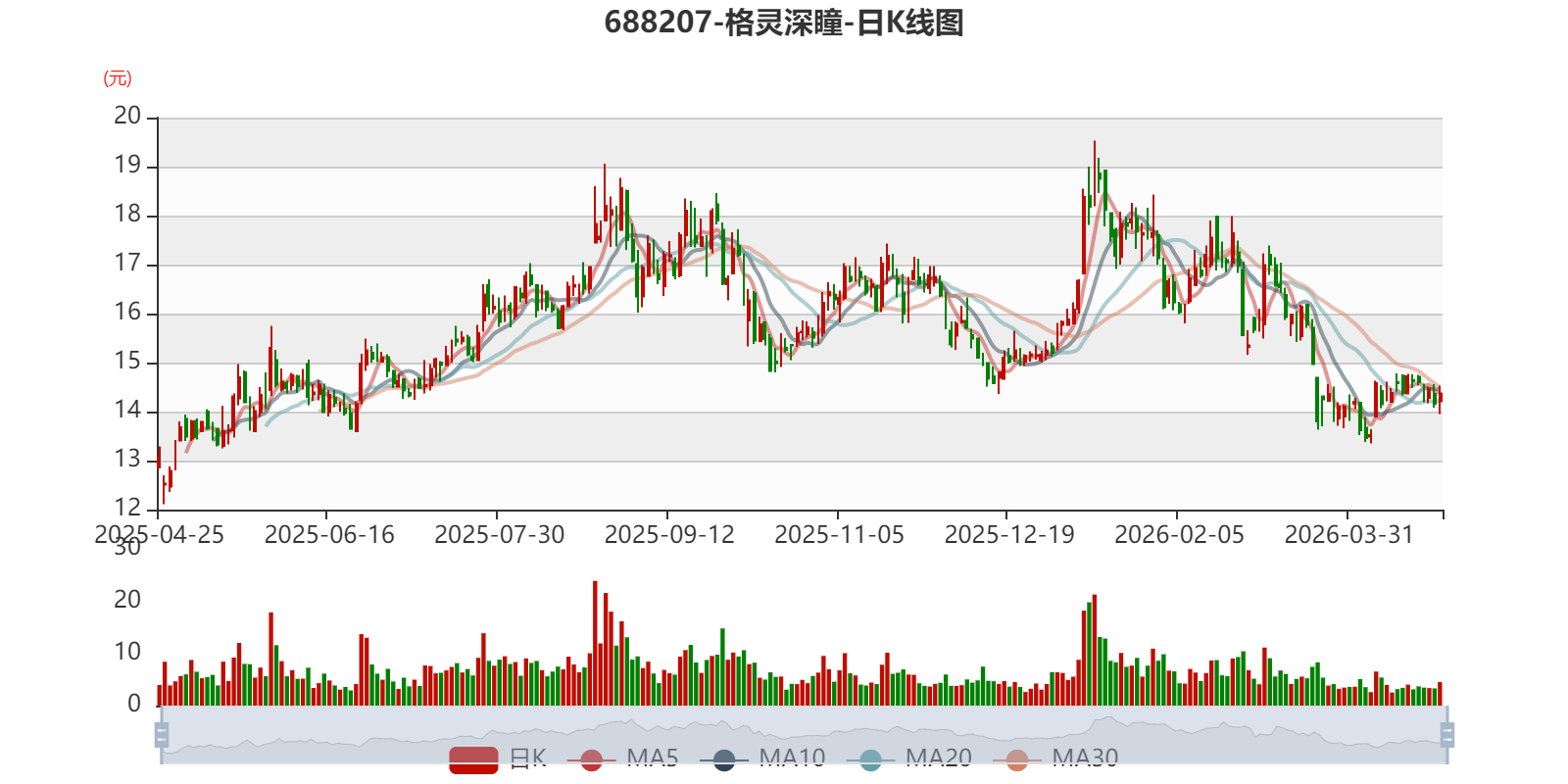 中证智能财讯格灵深瞳(688207)4月25日披露2025年年度报告。2025年,公司实现营业总收入1.55亿元,同比增长32.61%;归母净利润亏损1.86亿元,上年同期亏损2.12亿元;扣非净利润亏损2亿元,上年同期亏损2.27亿元;经营活动产生的现金流量净额为-2.13亿元,上年同期为-1.47亿元;报告期内,格灵深瞳基本每股收益为-0.73元,加权平均净资产收益率为-9.57%。