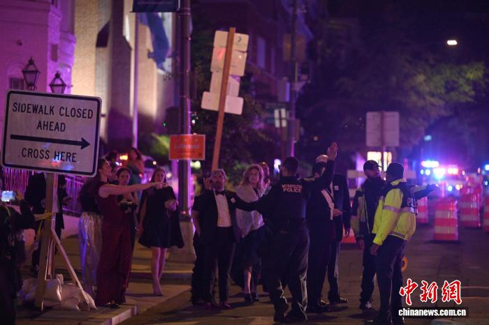 当地时间4月25日,华盛顿,白宫记者协会晚宴发生枪击事件。出席活动的美国总统特朗普被紧急撤离。图为举行晚宴的酒店外。中新社记者陈孟统摄