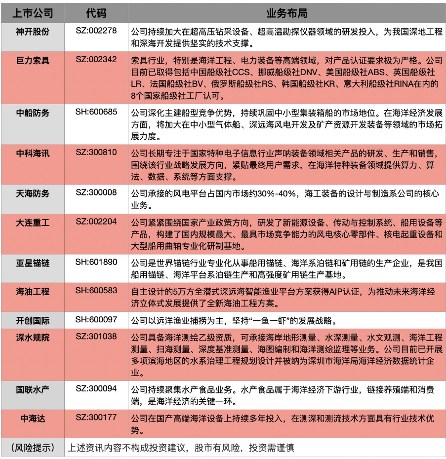 国金证券认为,随着海洋经济、深海科技相关鼓励政策的陆续出台以及行业技术进步,海洋高端装备制造有望加速发展,海工装备、水下作业装备和海底新基建三个细分领域有望迎来加速成长。