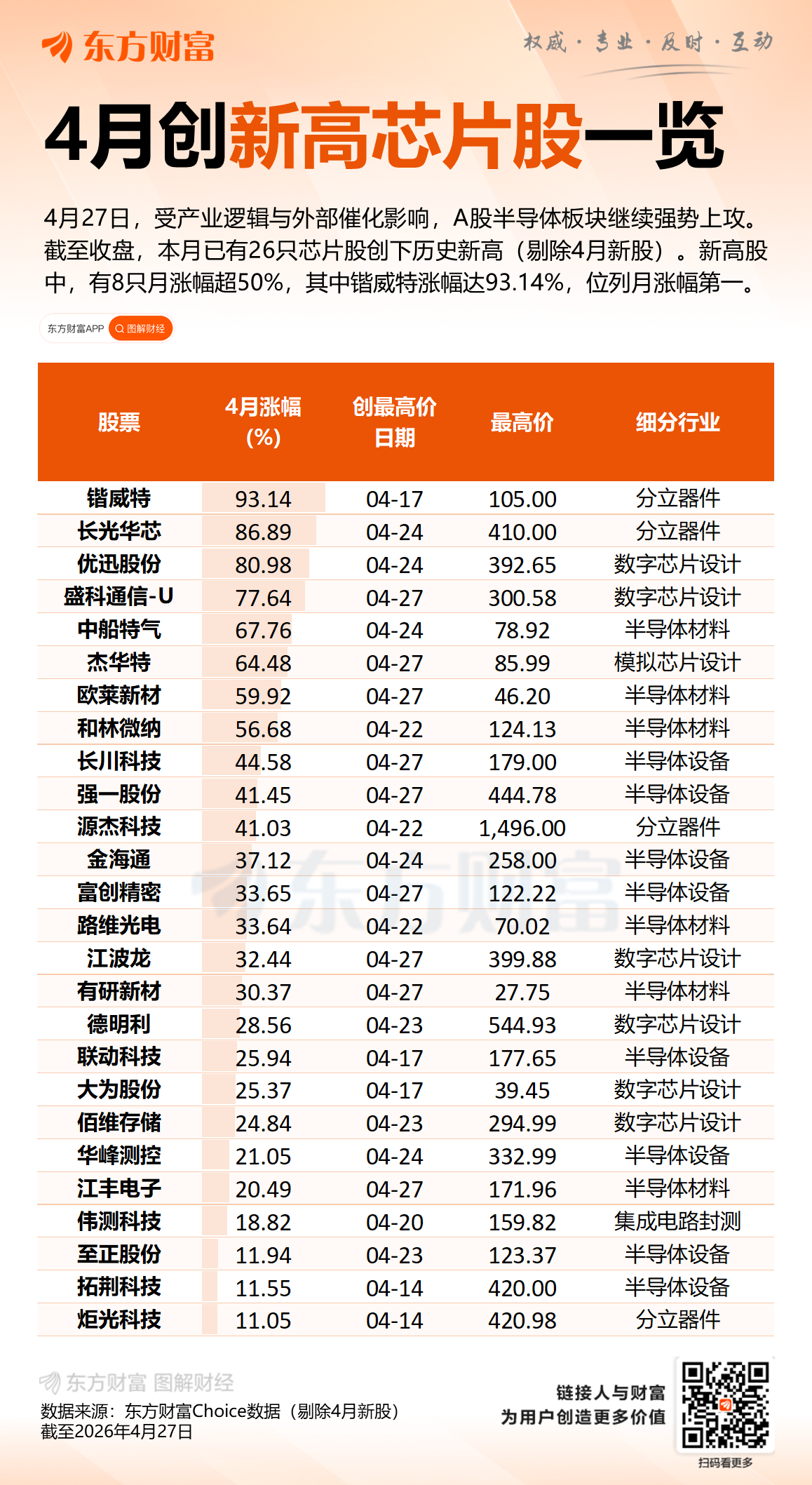 半导体板块狂飙突进 一图速览4月新高芯片股