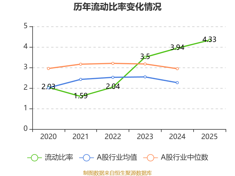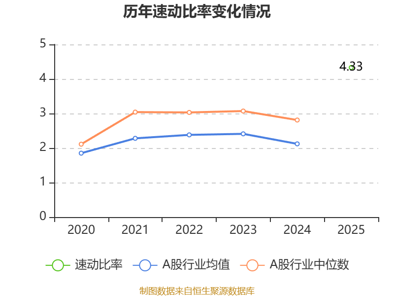 2025年,公司流动比率为4.33,速动比率为4.33。