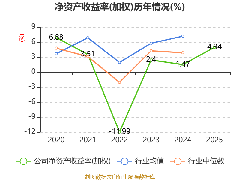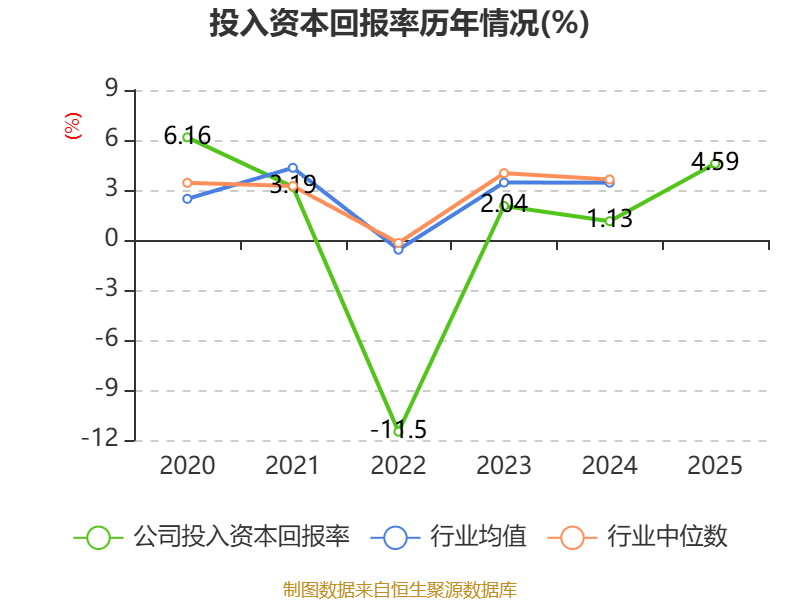 数据显示,2025年公司加权平均净资产收益率为4.94%,较上年同期上升3.47个百分点。公司2025年投入资本回报率为4.59%,较上年同期上升3.46个百分点。