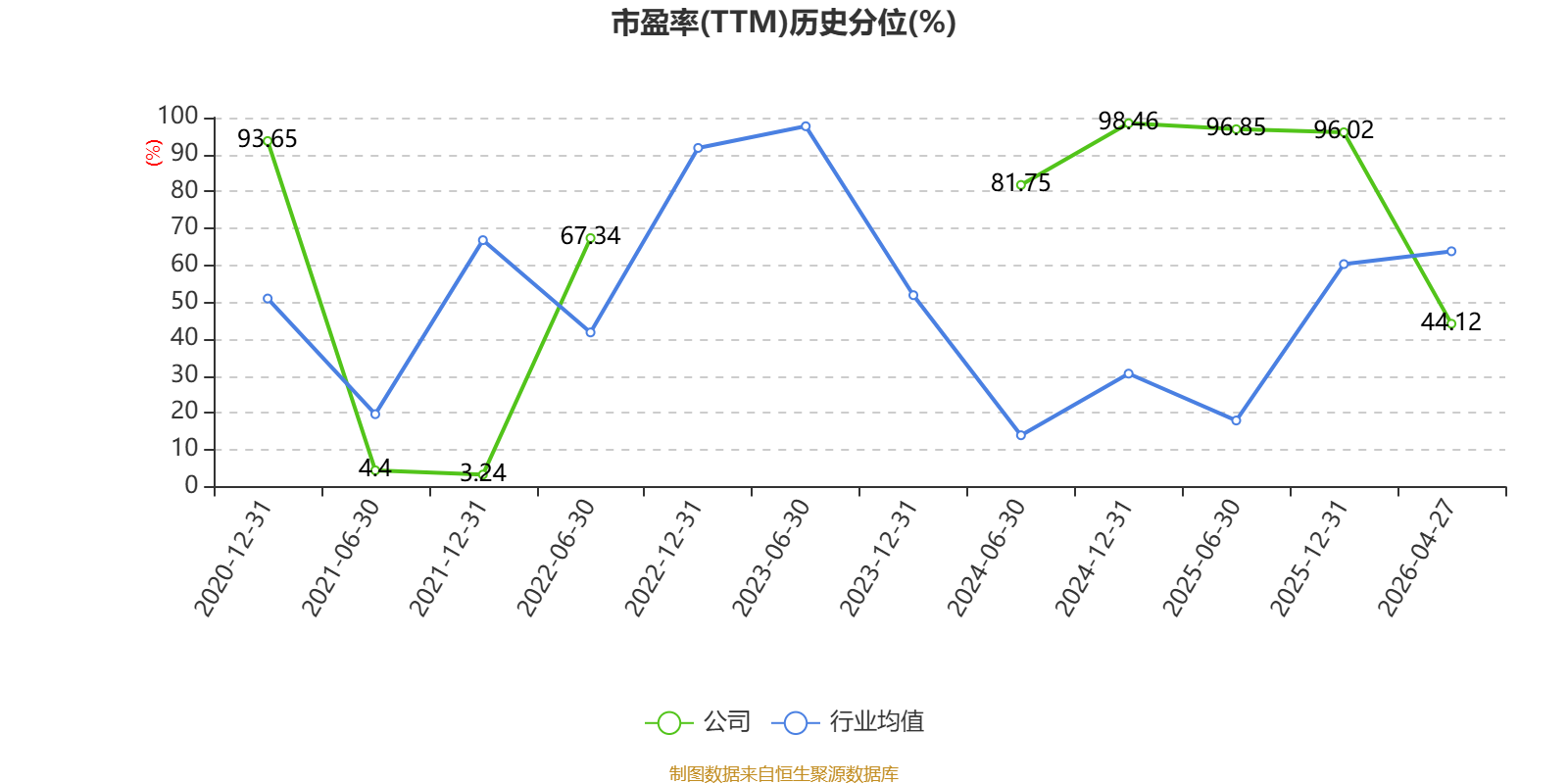 市盈率、市净率为负时,不显示当期分位数,会导致折线图中断。