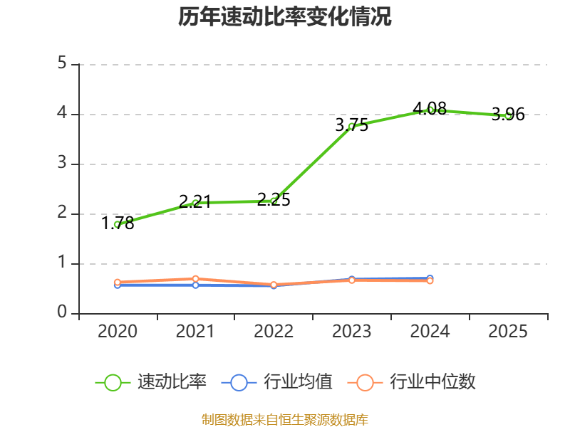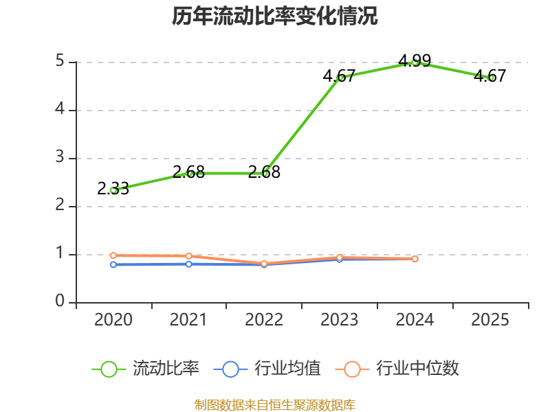 2025年,公司流动比率为4.67,速动比率为3.96。