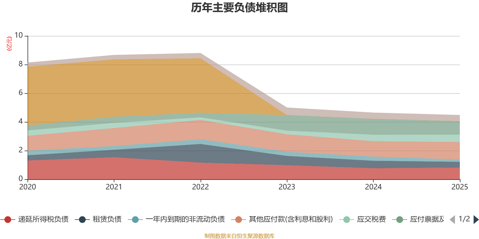 负债重大变化方面,截至2025年末,公司应付票据及应付账款较上年末减少14.98%,占公司总资产比重下降0.67个百分点;一年内到期的非流动负债较上年末减少45.9%,占公司总资产比重下降0.47个百分点;租赁负债较上年末减少23.45%,占公司总资产比重下降0.47个百分点;其他应付款(含利息和股利)较上年末增加14.34%,占公司总资产比重上升0.41个百分点。