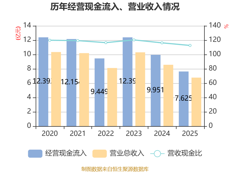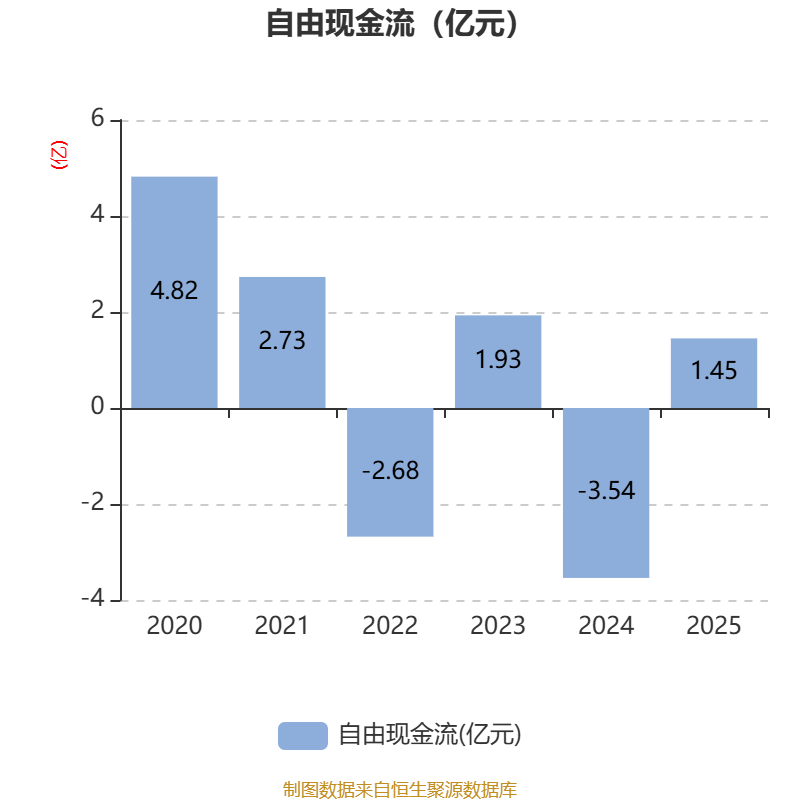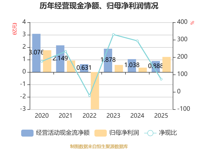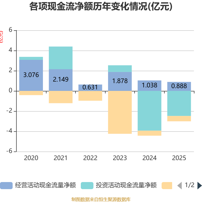 截至2025年,公司经营活动现金流净额为8882.95万元,同比下降14.42%;筹资活动现金流净额-5259.17万元,同比减少310.94万元;投资活动现金流净额-2.48亿元,上年同期为-3.94亿元。