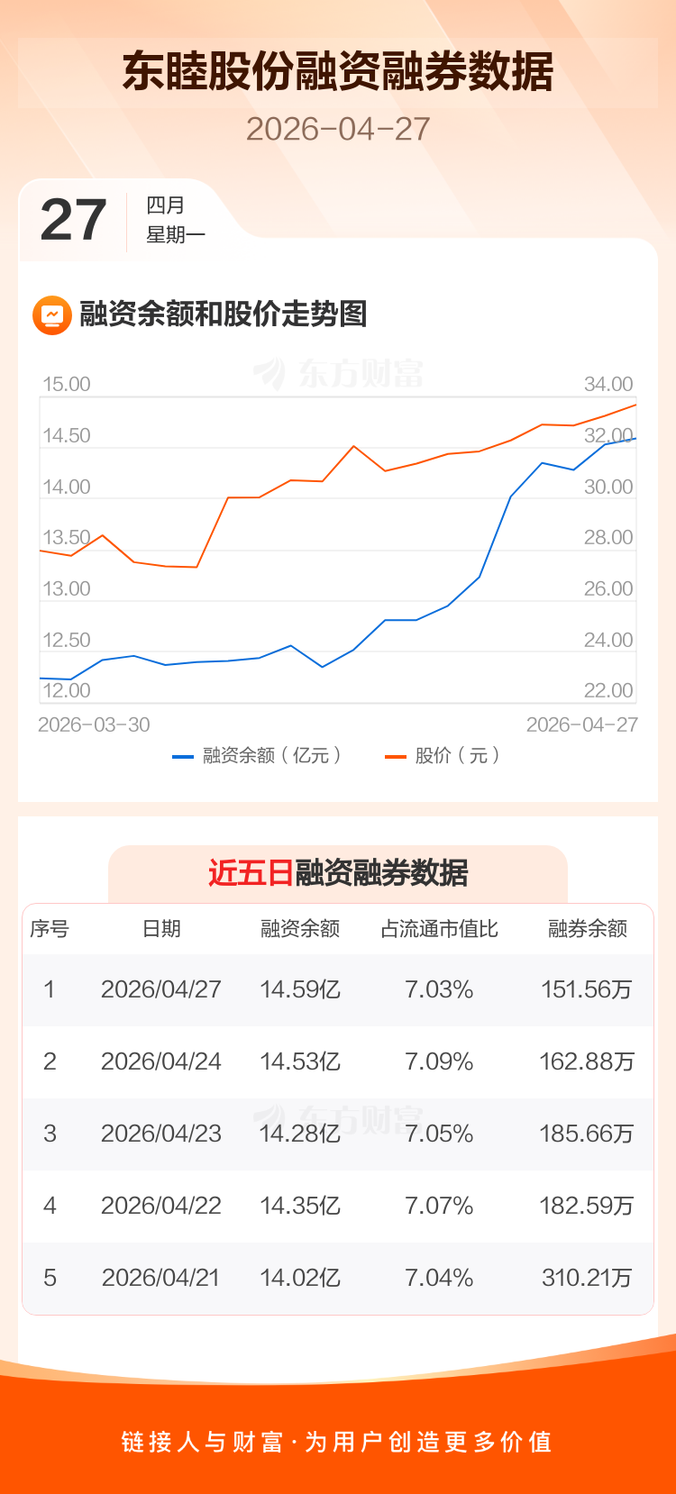 交易所最新数据显示,东睦股份于2026年4月27日获融资买入5630.09万元,融资偿还5074.12万元,当日融资净买入555.97万元。目前,该股融资余额14.59亿,占流通市值比例为7.03%。