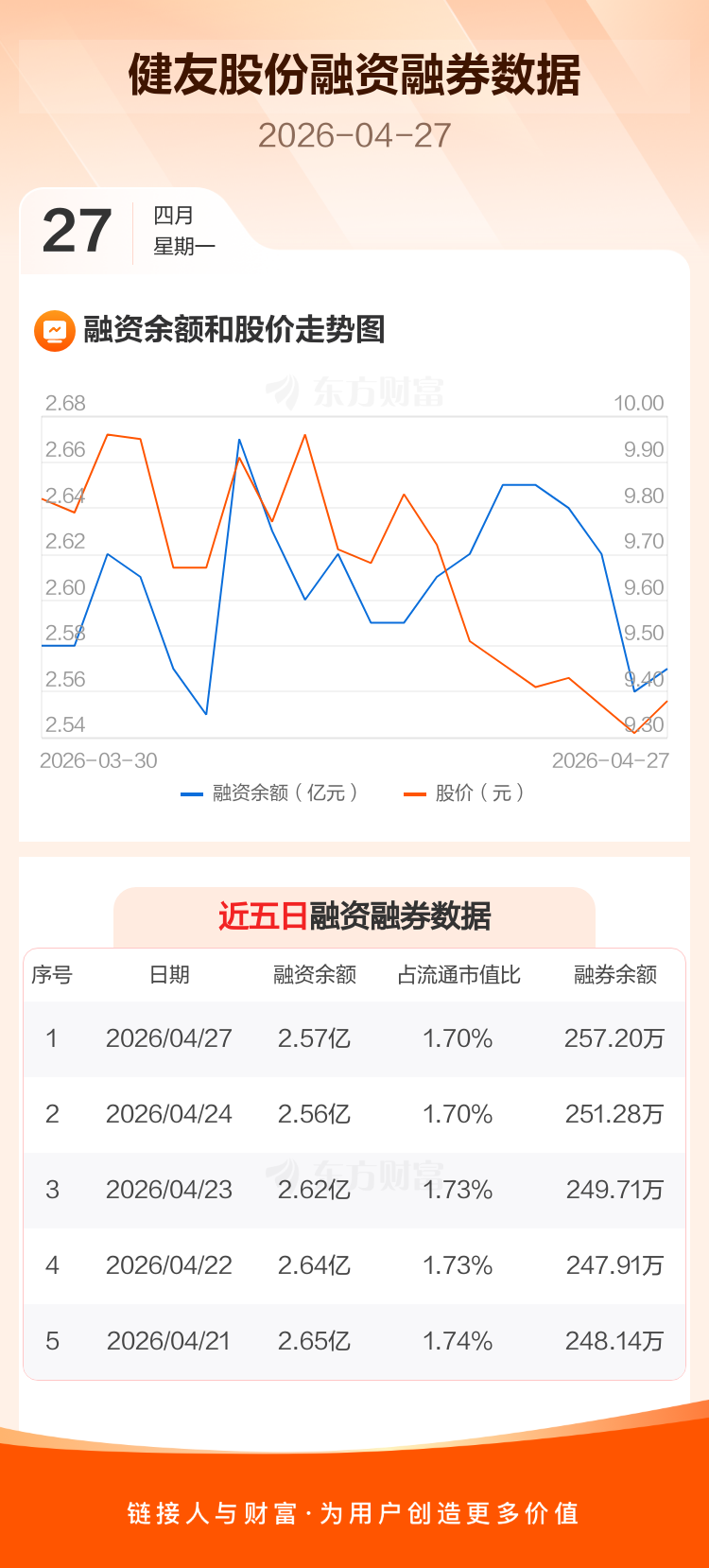 交易所最新数据显示,健友股份于2026年4月27日获融资买入459.82万元,融资偿还386.00万元,当日融资净买入73.81万元。目前,该股融资余额2.57亿,占流通市值比例为1.70%。