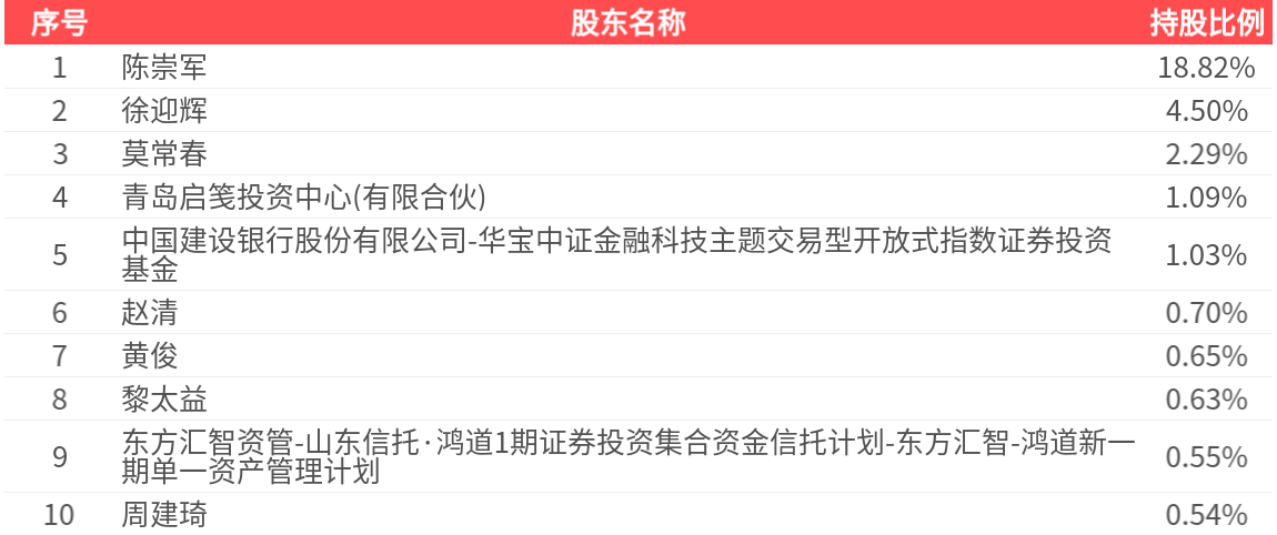 公司股东户数为1.90万户,前十大股东持股数量为1.05亿股,占总股本比例为30.80%,前十大股东持股情况如下: