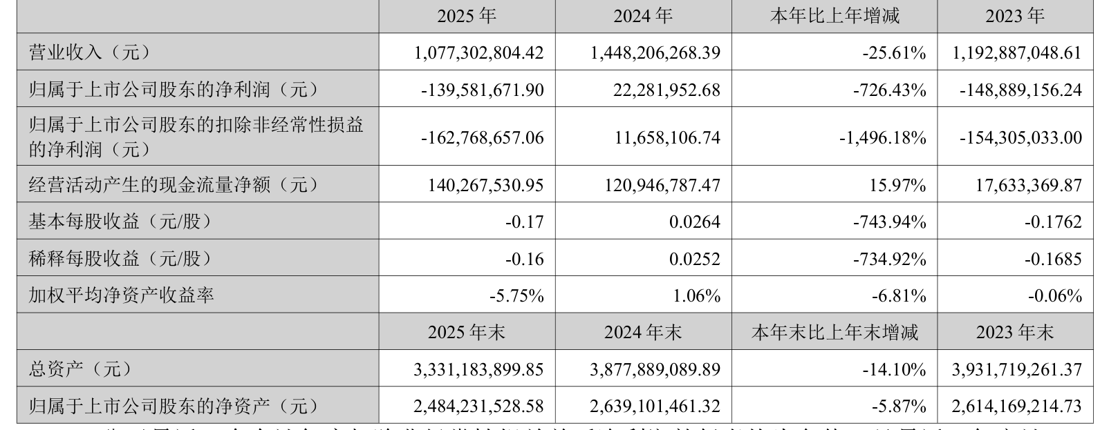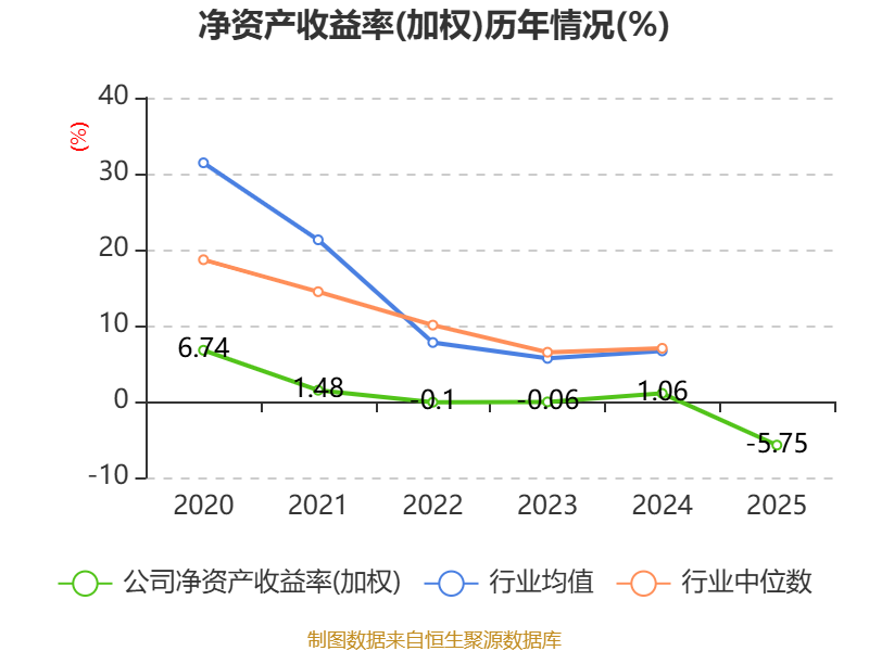 数据显示,2025年公司加权平均净资产收益率为-5.75%,较上年同期下降6.81个百分点。公司2025年投入资本回报率为-5.24%,较上年同期下降5.97个百分点。