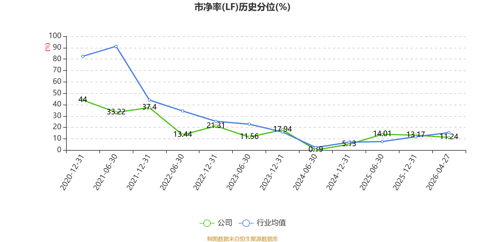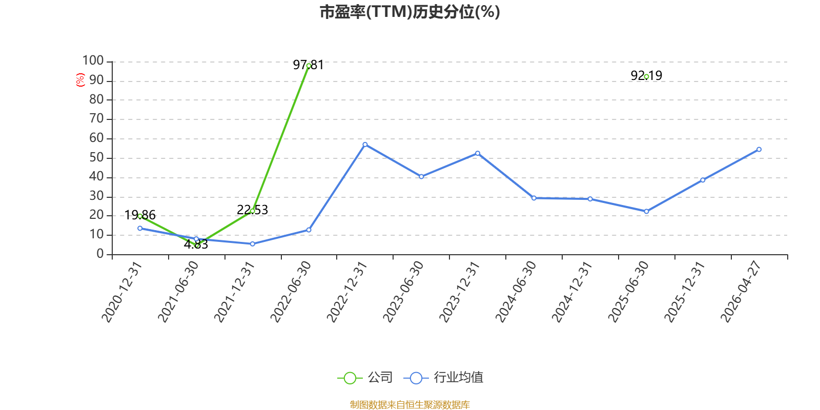市盈率、市净率为负时,不显示当期分位数,会导致折线图中断。
