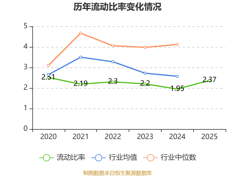 2025年,公司流动比率为2.37,速动比率为2.06。
