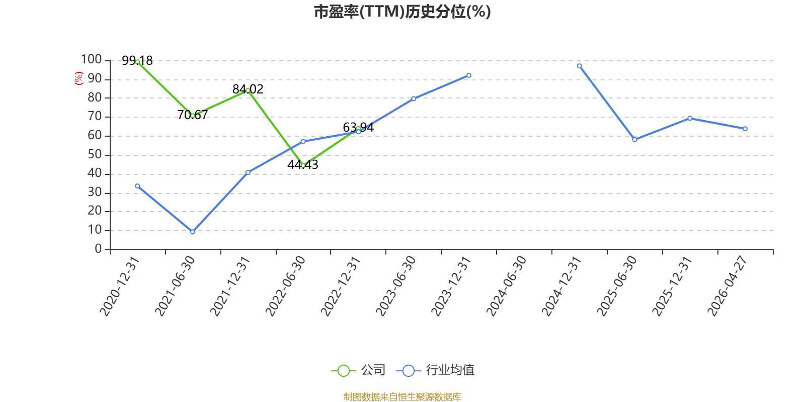 市盈率、市净率为负时,不显示当期分位数,会导致折线图中断。